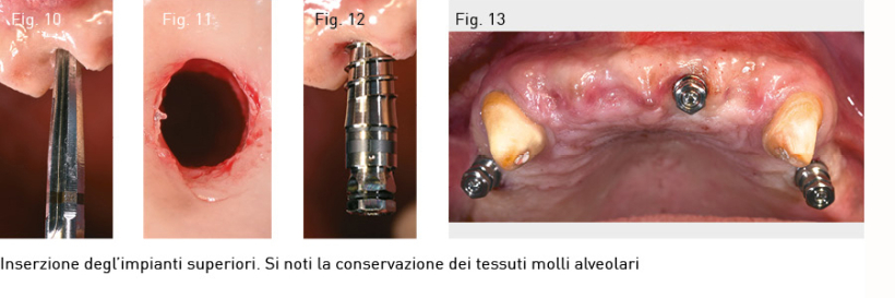 Mentre si costruisce il porta impronte individuale viene effettuato l’intervento superiore con l’inserimento di tre impianti Syra macchinati.