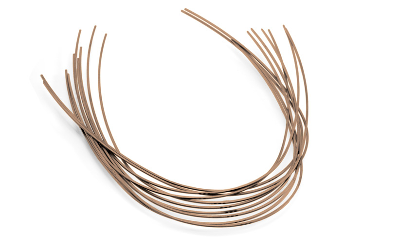 Costruiti in una particolare lega di nichel-titanio, possono essere piegati e modellati con una pinza a temperatura ambiente, ma raggiungono la massima modellabilità raffreddandoli sotto i 20°C. Una volta posizionati nel cavo orale, alla temperatura di 37°C tornano ad assumere la loro forma originaria sollecitando quindi i denti con delle forze leggere e costanti. Sono ideali per l’inserimento negli slot non allineati.