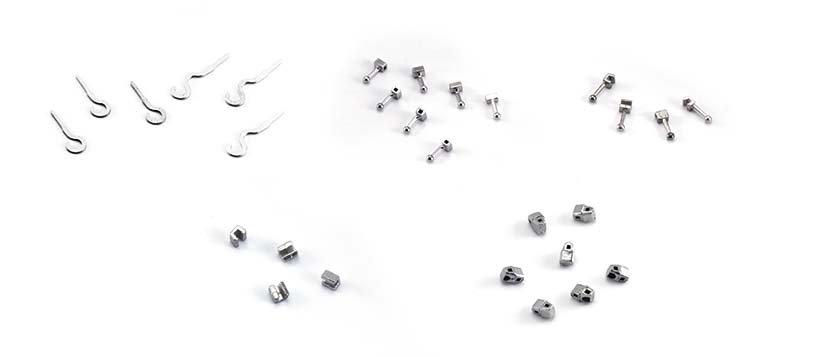 Serie di accessori per rifinire o correggere le funzioni degli archi e fili ortodontici, comodi e pratici ganci a palla per realizzare un punto di presa sull’arco, facilmente modificabili e confortevoli per il paziente grazie alla forma arrotondata; ganci a uncino singolo e uncino doppio per creare gli ancoraggi a trazioni aggiuntive; stop e tubi ausiliari per gli archi.